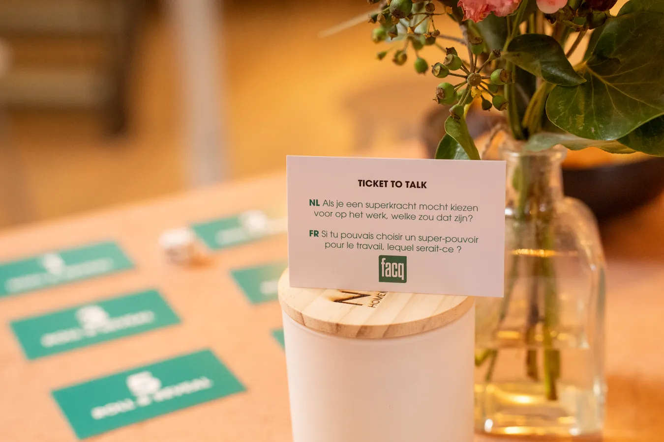 The Facq kick‑off event at OFF in Waver immediately set the tone for the new year. After an inspiring plenary session, the teams split up into several breakout workshops that gave them a sharp and honest view of where they stand today — and where they want to go together. Between the more content‑driven sessions, two surprising out‑of‑the‑box workshops added an unexpected twist: a body‑percussion moment that literally brought everyone into the same rhythm, and a speed‑date exercise that connected colleagues in a fresh, playful way. The mix of togetherness, new insights, high energy and — of course — great food and drinks created a kick‑off that not only motivated, but also gave the team spirit a powerful boost. Facq starts the year with enthusiasm, focus and a clear shared drive.